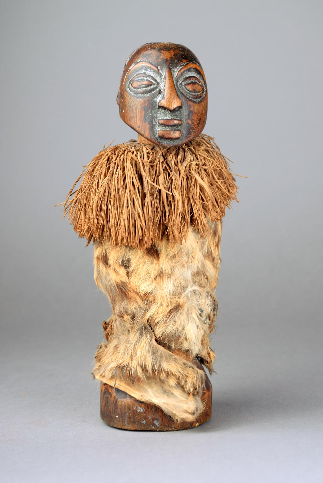 wood, fibre and fur, with a charge recess to the top of the head and with hands on the abdomen,