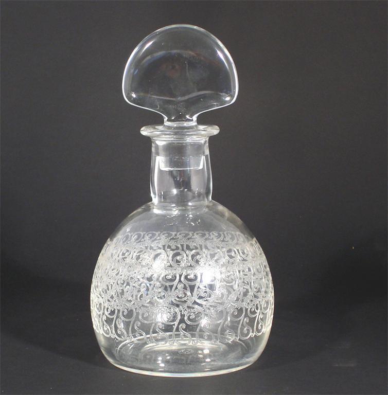 A Baccarat Rohan decanter and stopper the ovoid body with engraved scrolling design acid-etched...