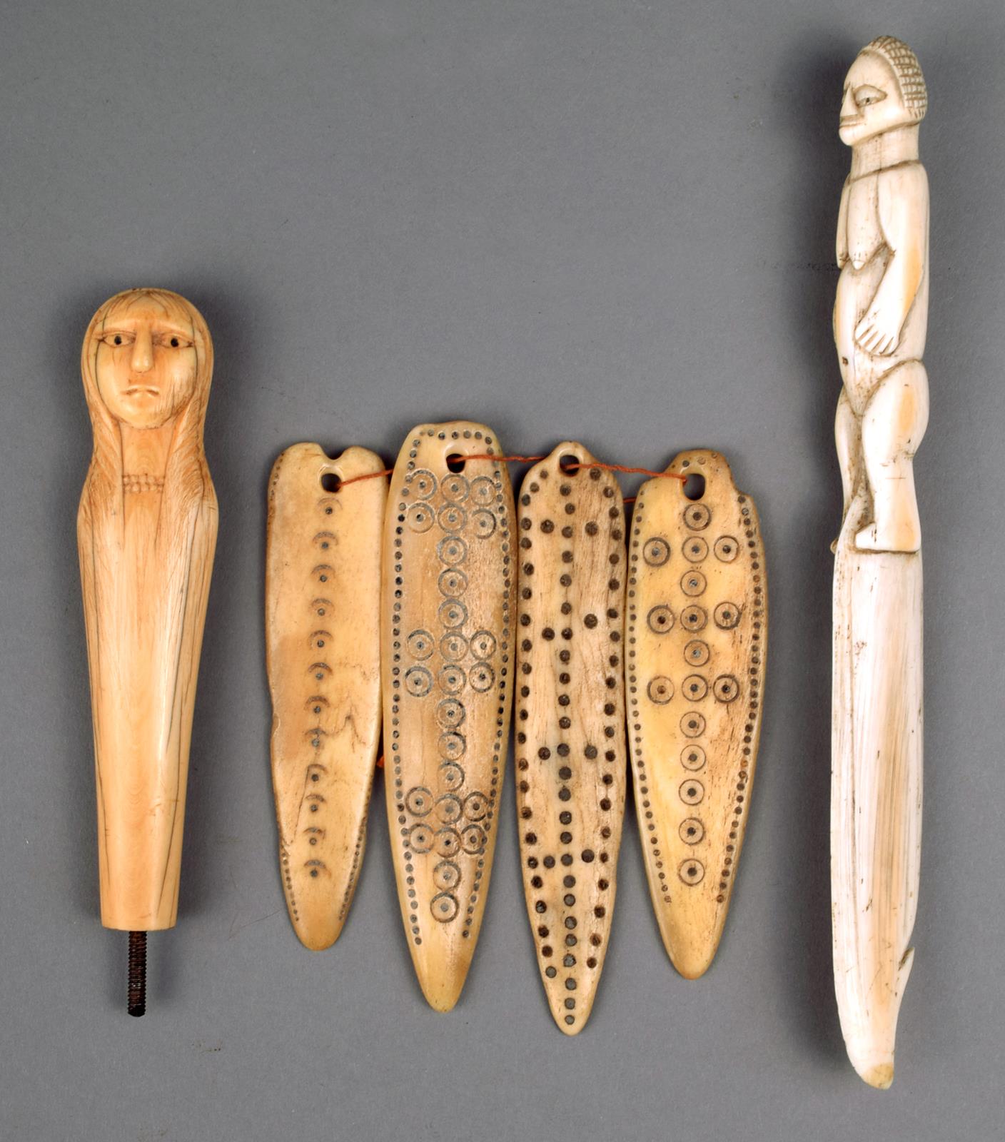 λ Four Oromo pendants Ethiopia bone with dot and circle decoration