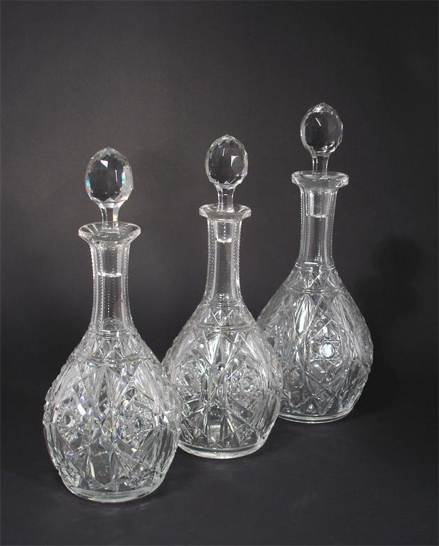 A pair of Baccarat Lagny cut glass decanter and stoppers and another larger one with acid etched...