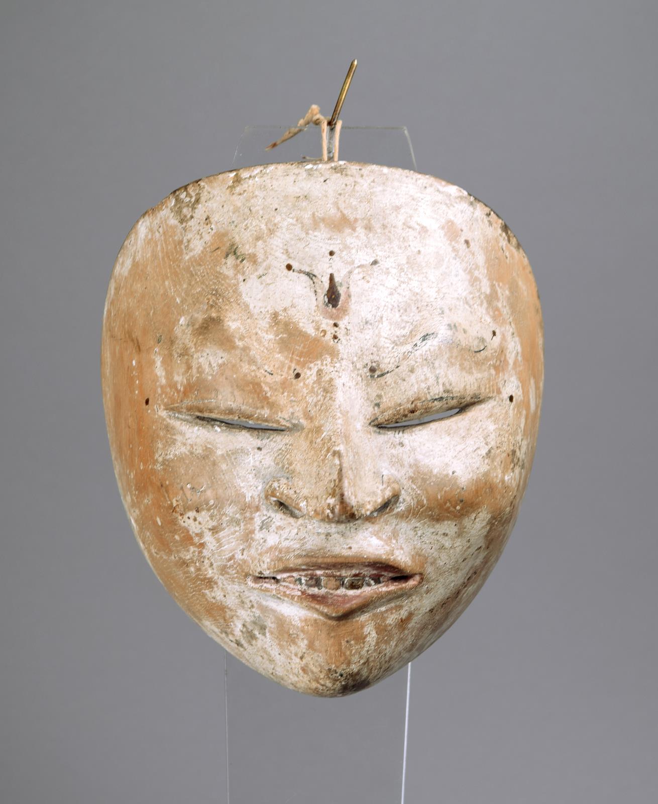 A Java mask Indonesia wood with remains of white pigment and painted decoration