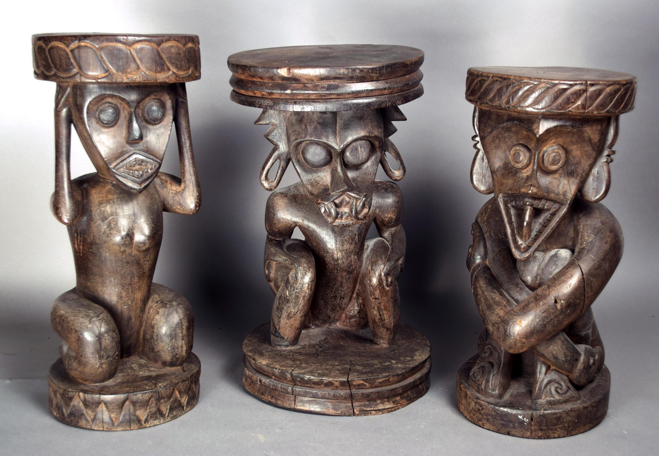 Three Dayak stools Indonesia wood