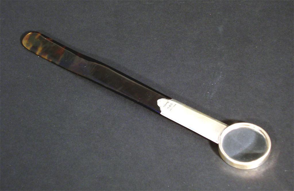An Asprey silver and tortoiseshell letter opener and magnifying glass manufactured by G W Lewis &...
