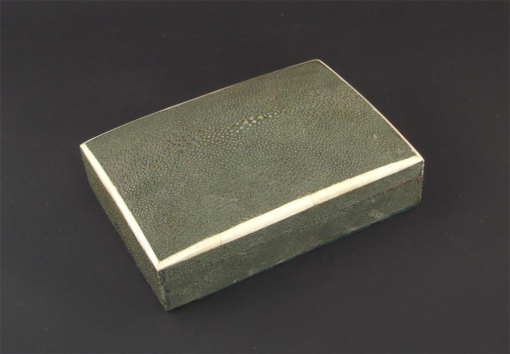 A domed ivory strung shagreen and cedar wood cigar/cigarette box rectangular section 19cm. wide