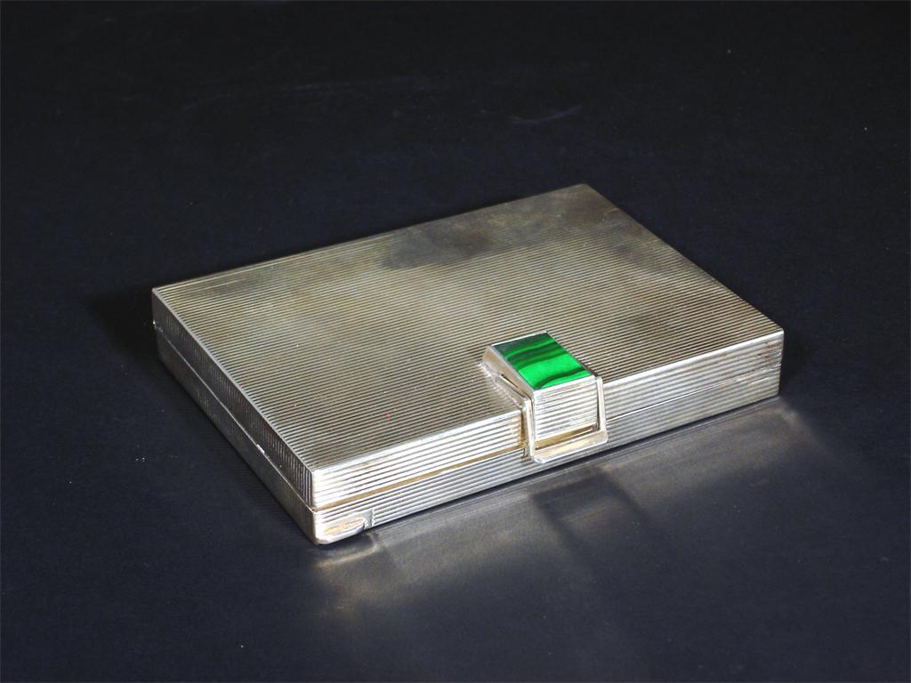 An Italian Art Deco silver and malachite minaudiere rectangular form with reeded decoration
