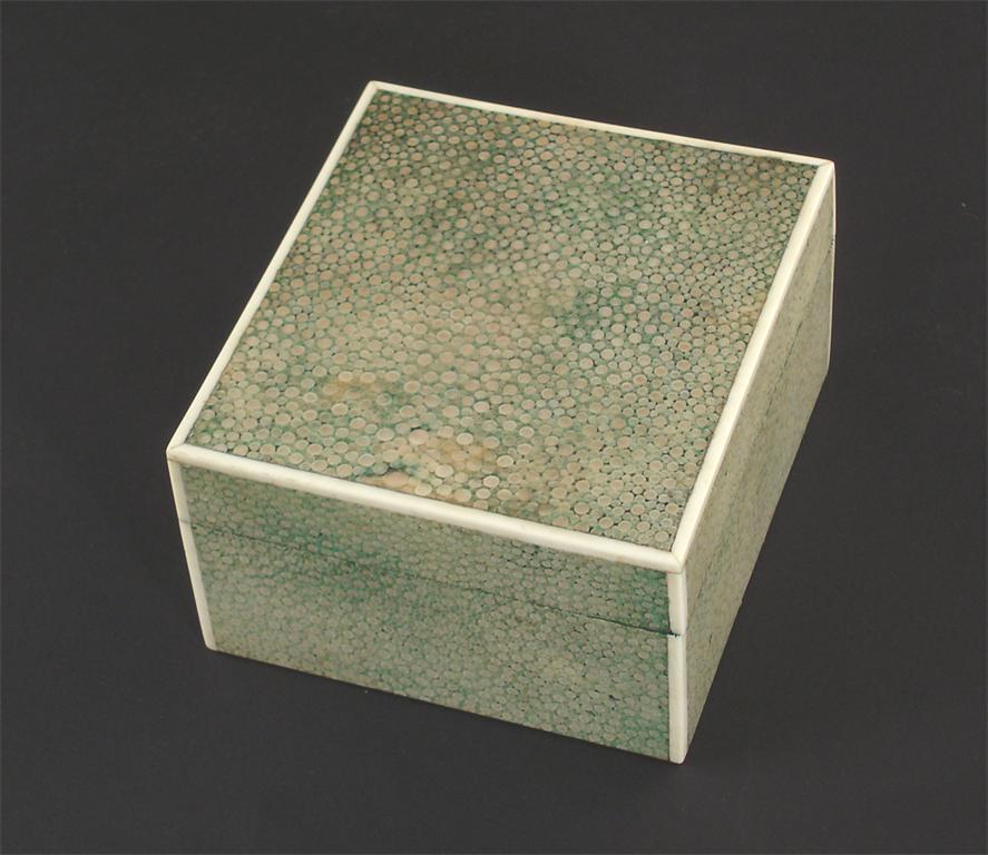 An English ivory strung shagreen and cedar wood cigarette box square section with hinged cover