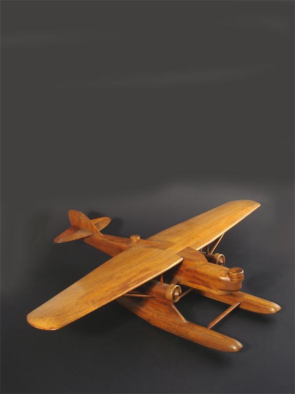 A continental wood and brass model of a seaplane