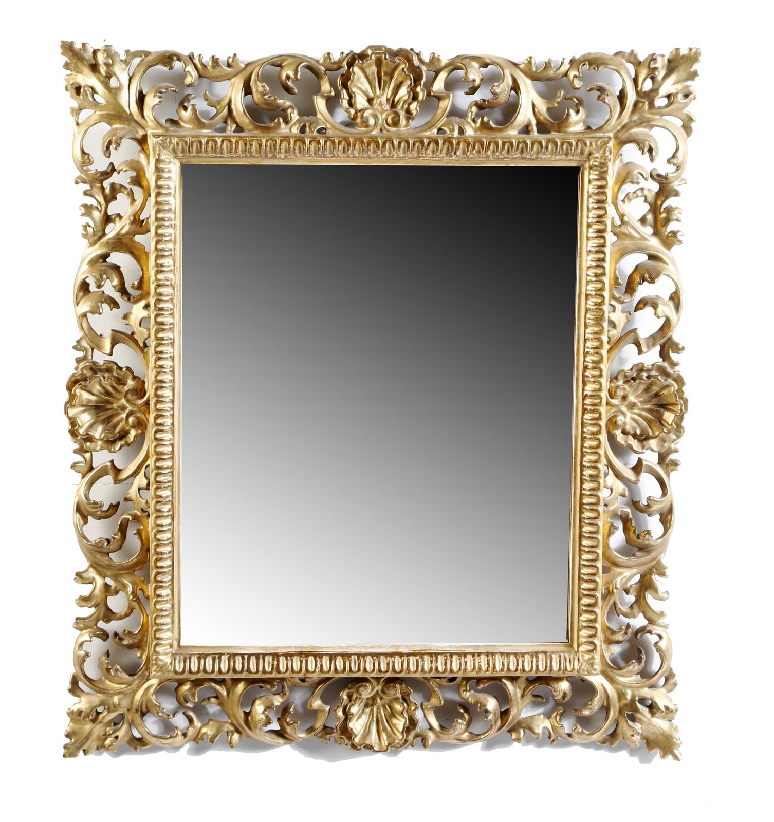 A late 19th century Italian Florentine giltwood wall mirror, the later rectangular plate with a leaf and shell carved frame, 59.5 x 51.6cm.