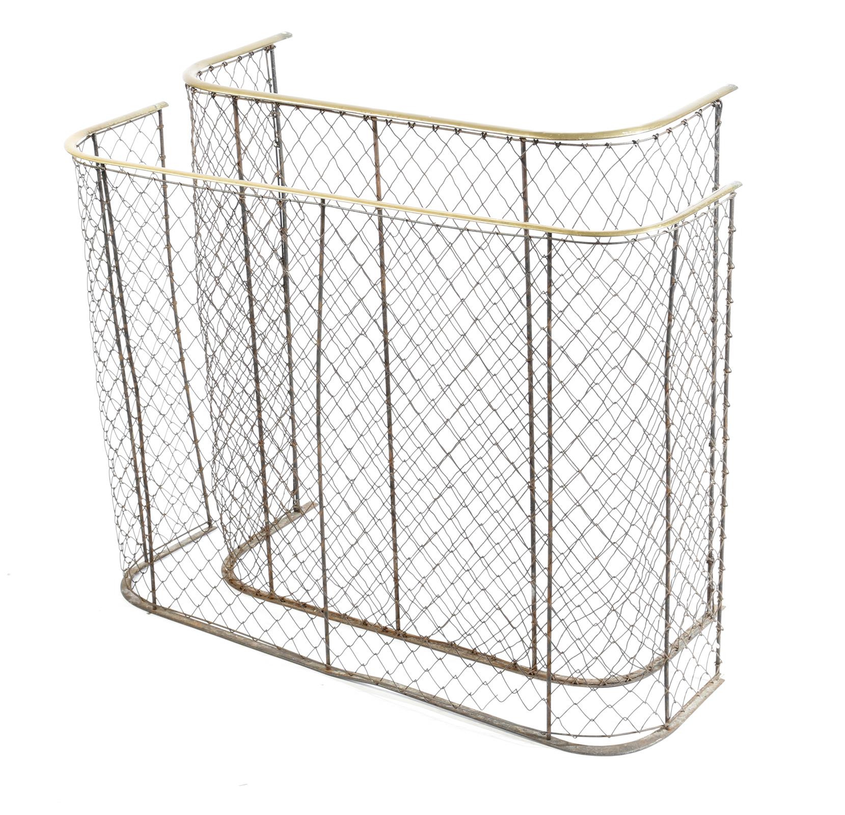 Two Victorian brass and wire work nursery fenders, 76.5cm high, 73cm wide, 32cm deep, and 69.6cm high, 91.5cm wide, 27cm deep. (2)
