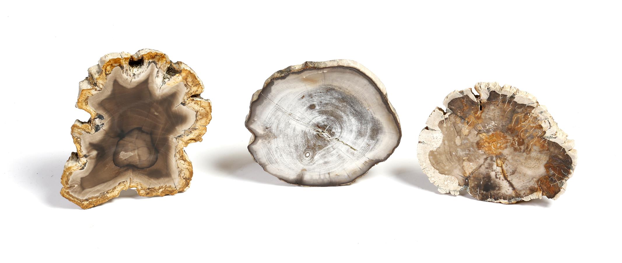 Three small polished petrified wood specimens