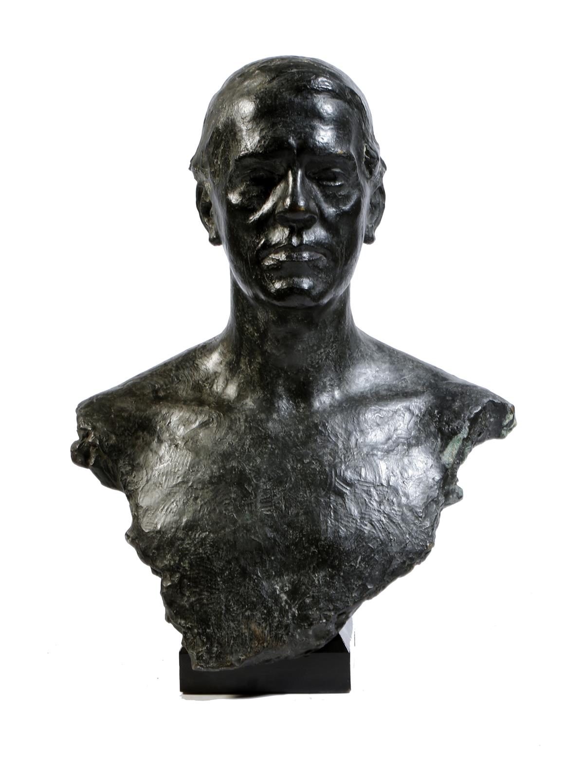 After Naoum Aronson (Russian 1872-1943). A bronze bust of a man, inscribed 'N Aronson', with a foundry pastille for ' Montagotelli Frères Paris', mounted on a later plinth, 65cm high.