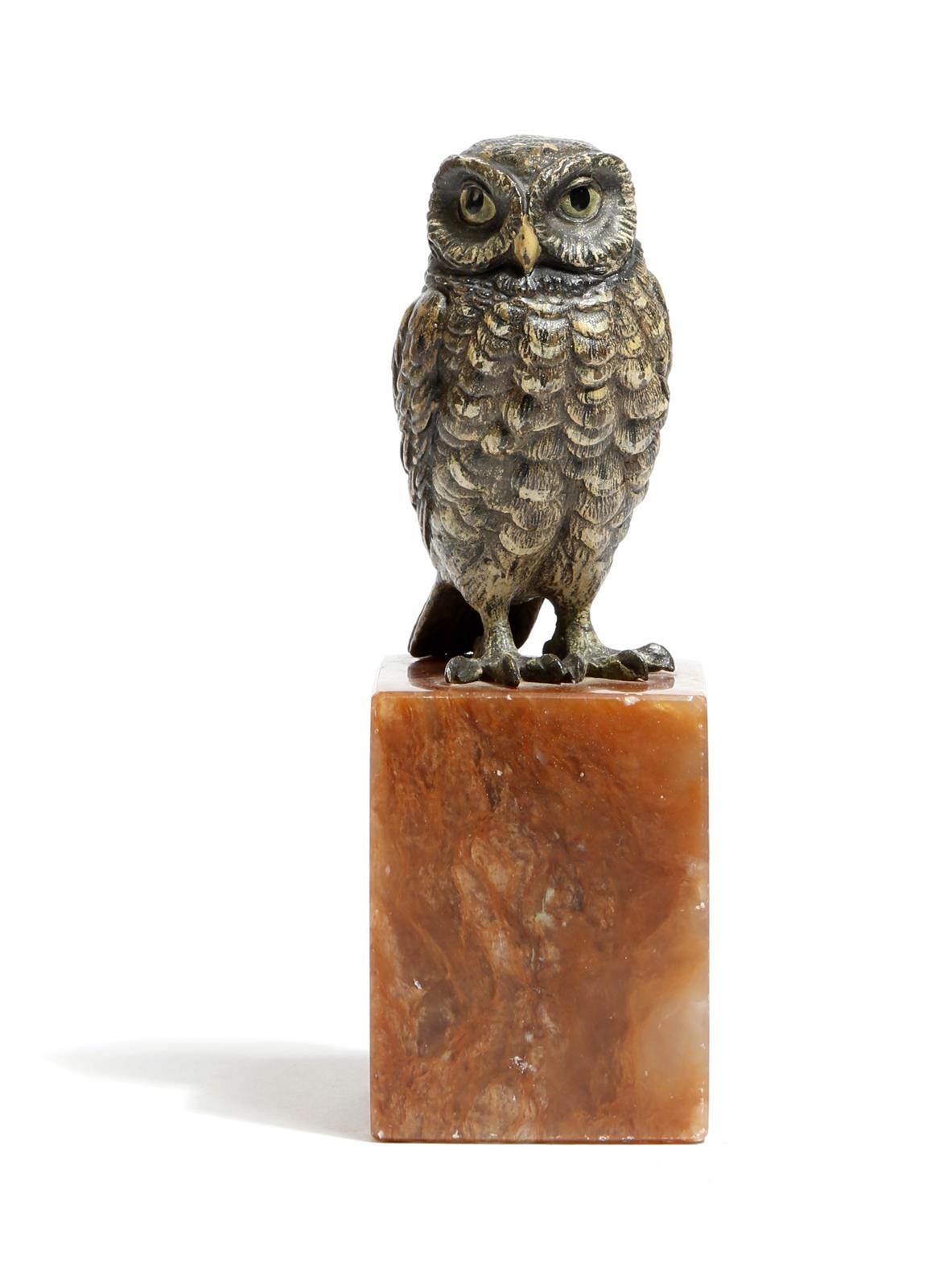 An Austrian cold painted bronze model of an owl in the manner of Bergman