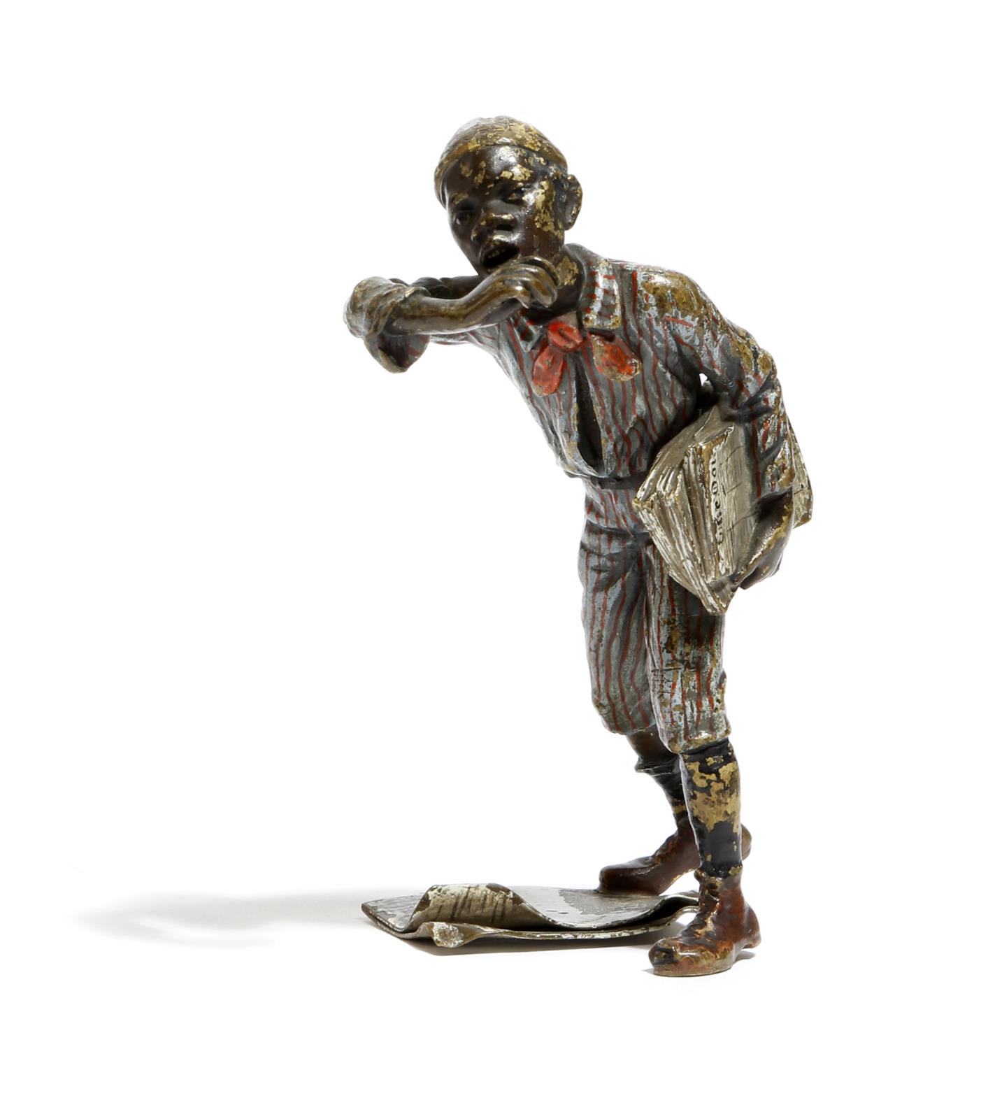 An Austrian cold painted bronze model of an American paper boy by Bergman