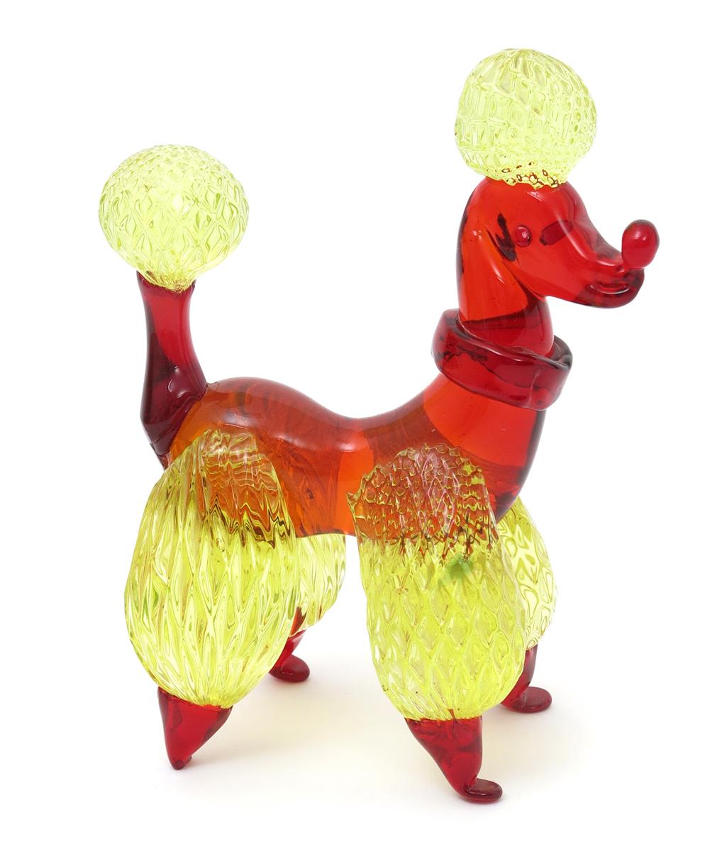 A Murano glass model of a standard poodle, lime green and red glass unsigned, 19.5cm. high.