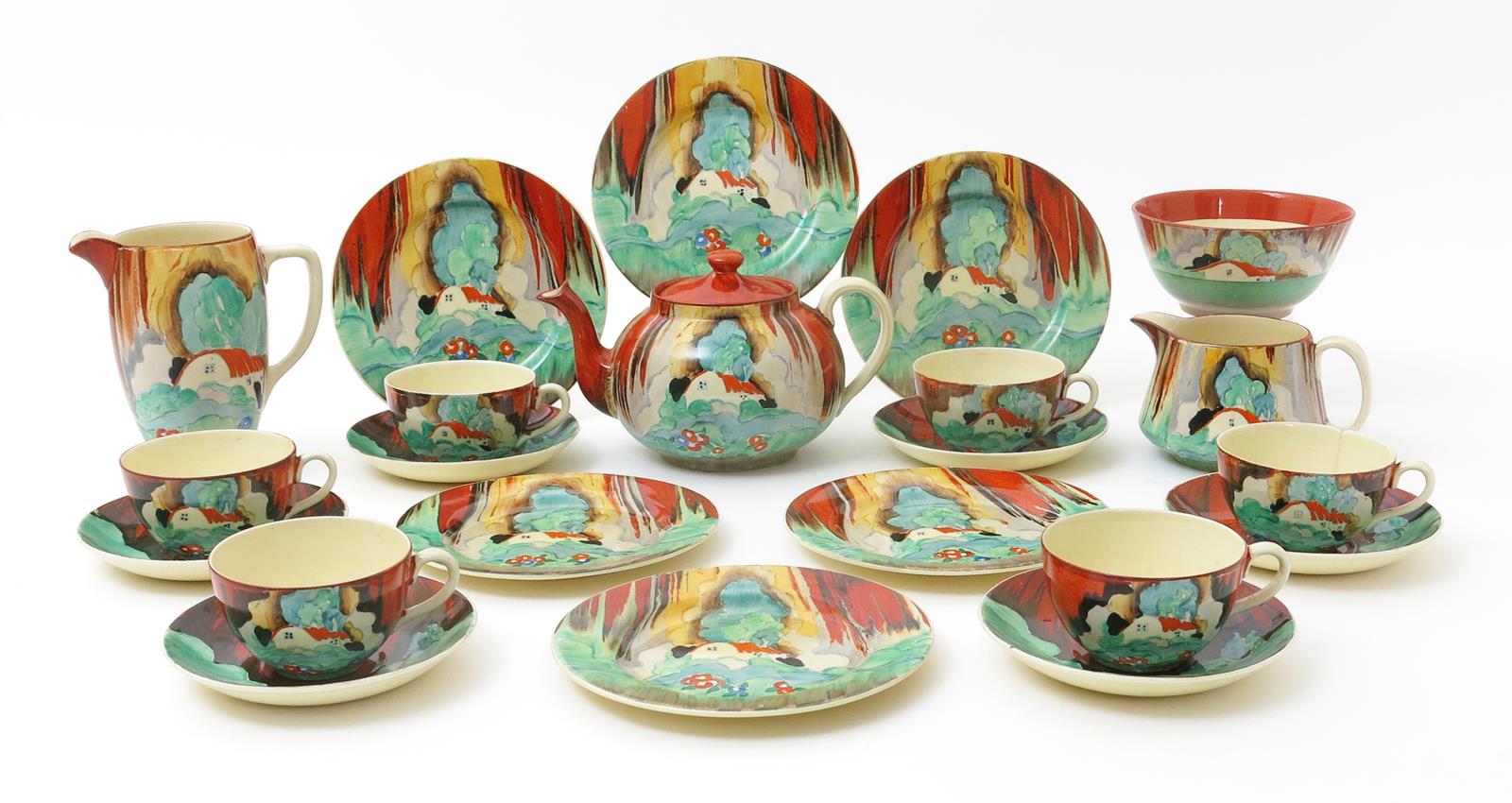 'Forest Glen' a Clarice Cliff Globe tea set for six