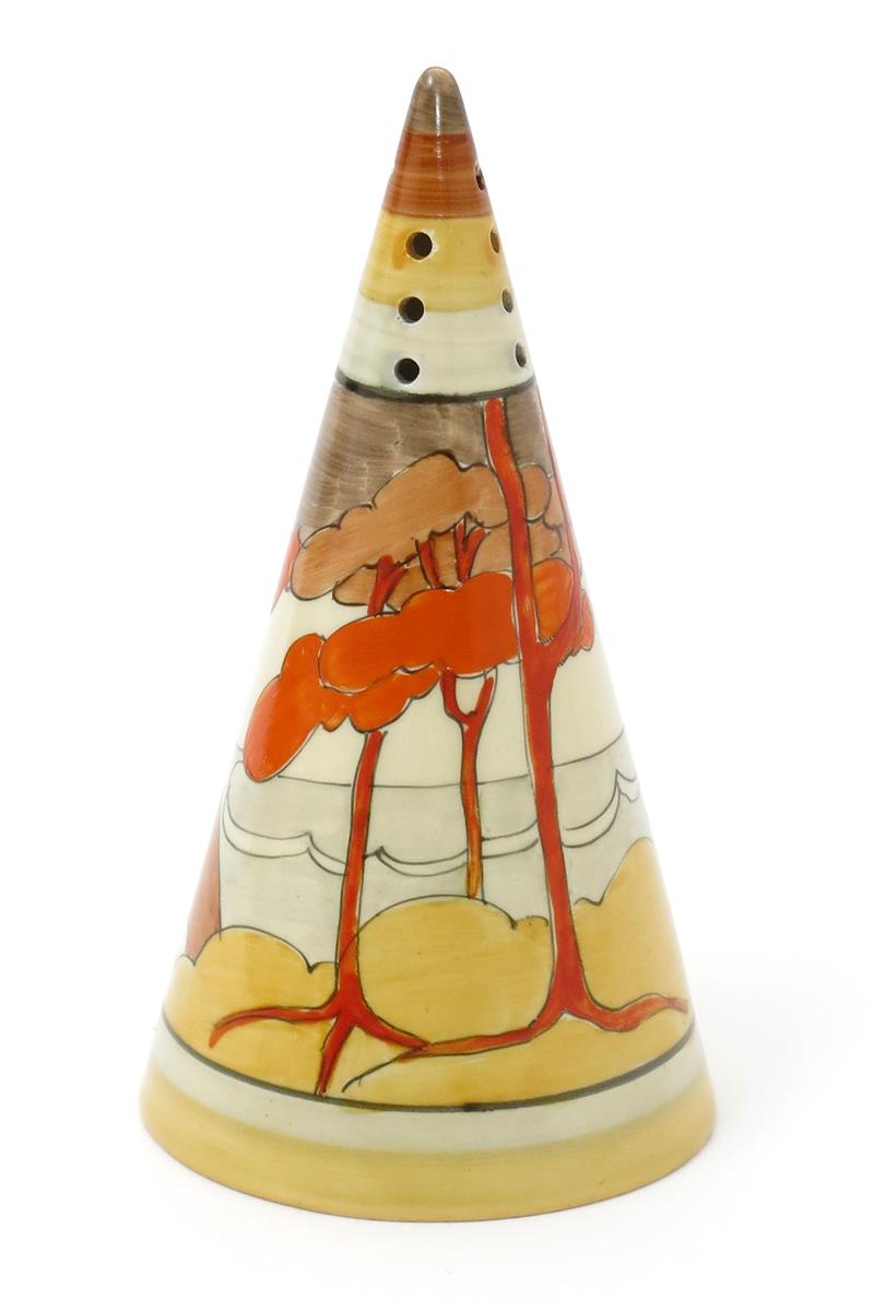 'Coral Firs' a Clarice Cliff Bizarre Conical sugar sifter