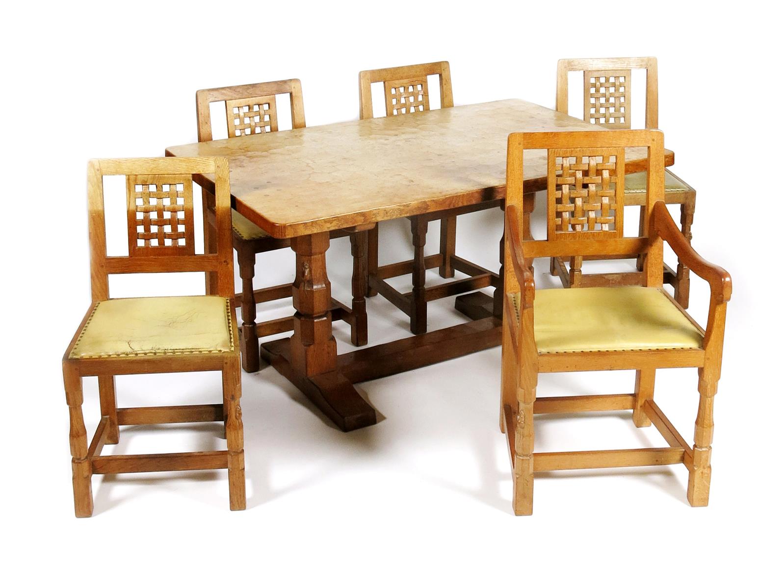 A Robert Mouseman Thompson oak Refectory Dining table and five chairs