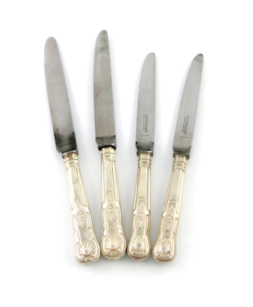 A set of eighteen silver-handled King's pattern table knives and eighteen dessert knives,