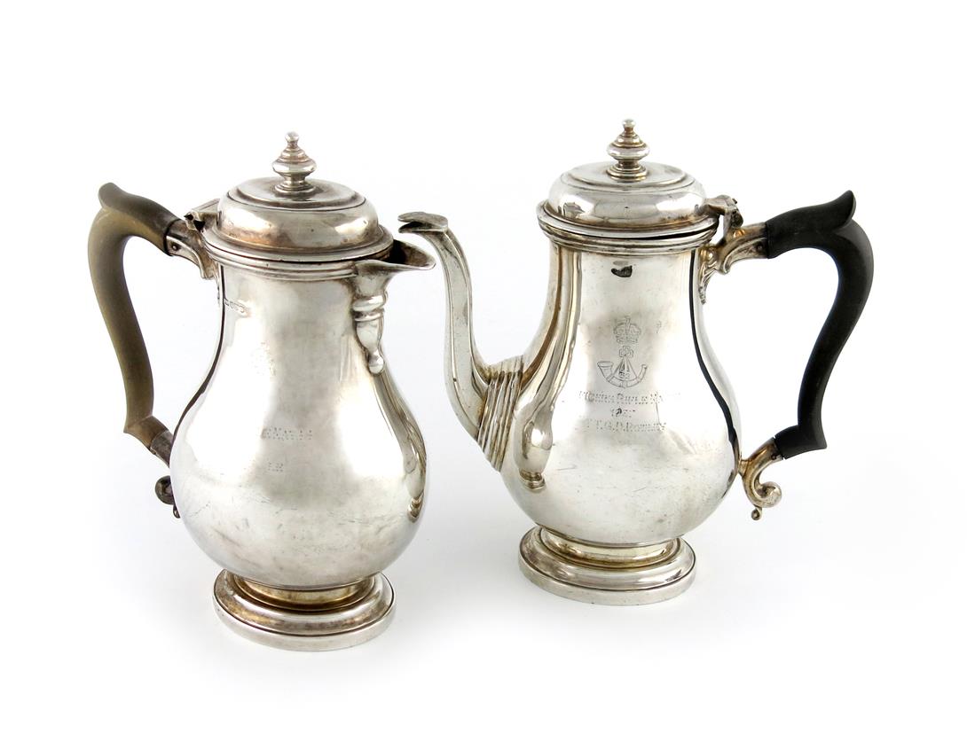A pair of regimental silver café au lait pots,