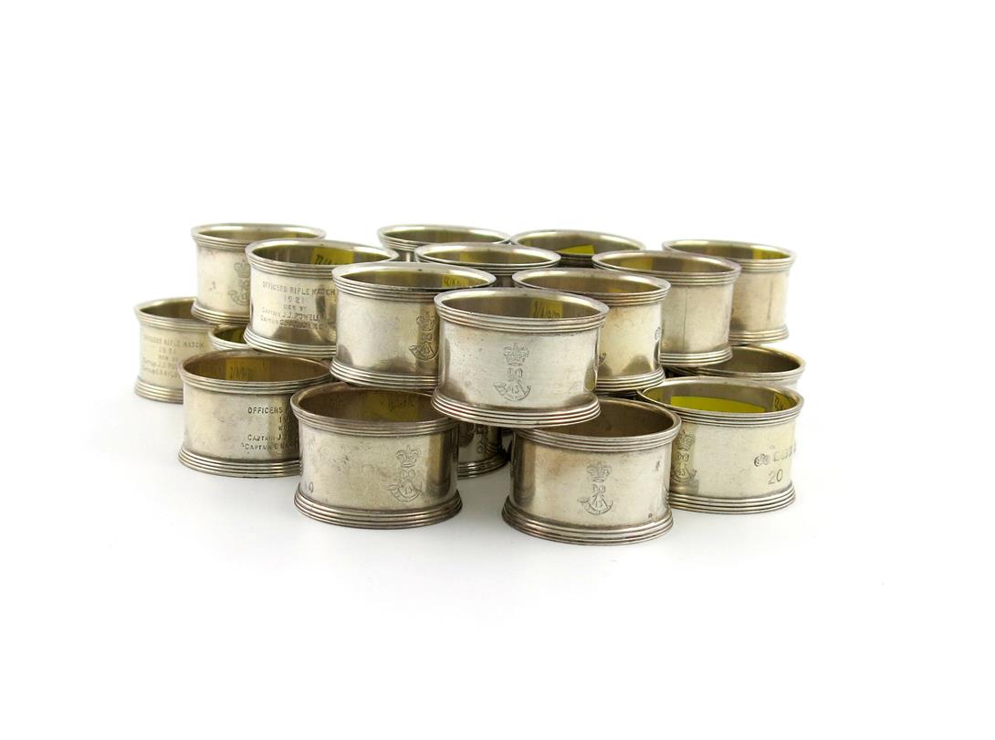 circular form, numbered 1-24, and inscribed 'Presented by Major Henley', and inscribed with the regimental badge, approx. weight 24oz. (24)