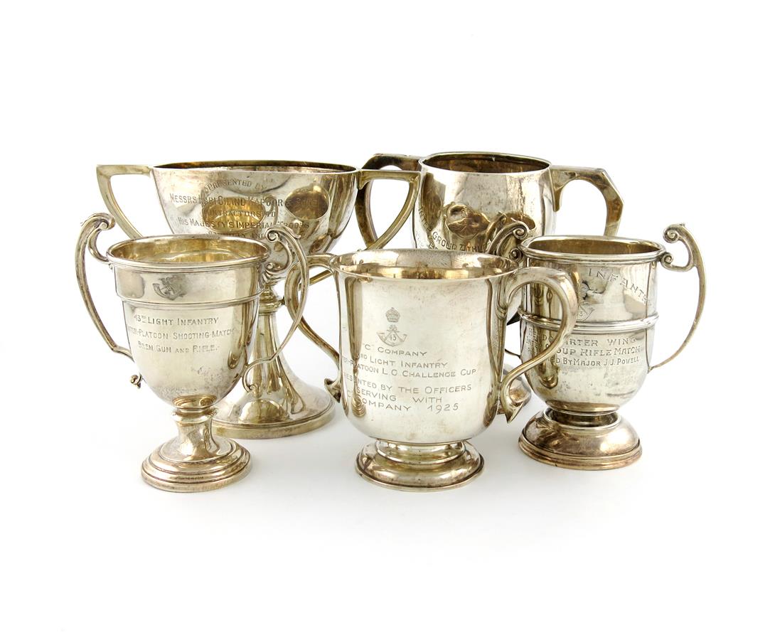 comprising: an Indian one by Hamilton and Co, 'inscribed '52 Light Infantry Victor Ludorum Cup', plus one Birmingham 1923, and three others, approx. weight 60oz. (5)