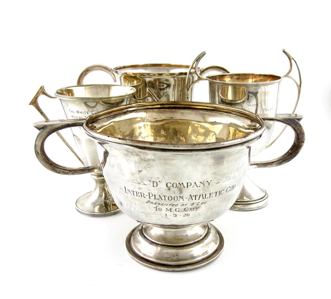 comprising: 'The Inter Platoon Athletic Club', Chester 1914, 'The Annual Marching and Turnout Competition', Sheffield 1937, 'The White Lion Cup', London 1931 and 'Burma District Athletic meeting, approx. weight 68oz. (4)