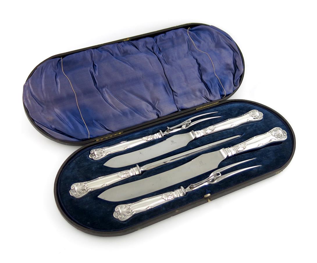 A five-piece late-Victorian silver King's Husk pattern carving set,