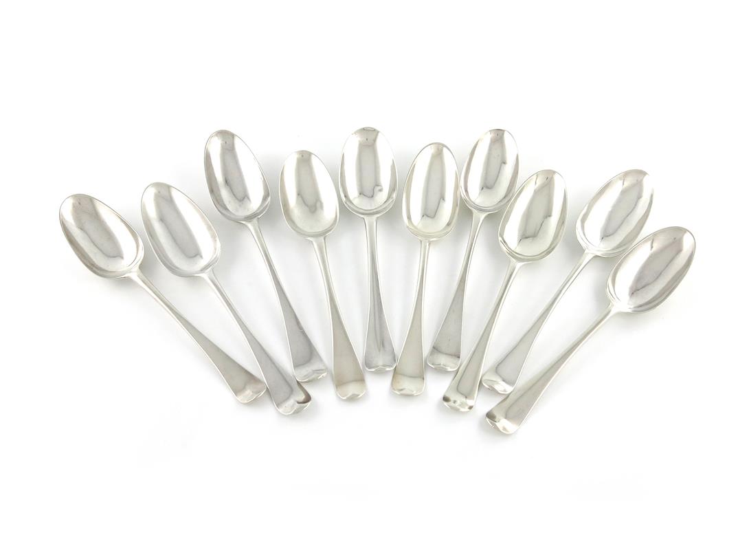Ten George II/III silver Hanoverian pattern tablespoons,