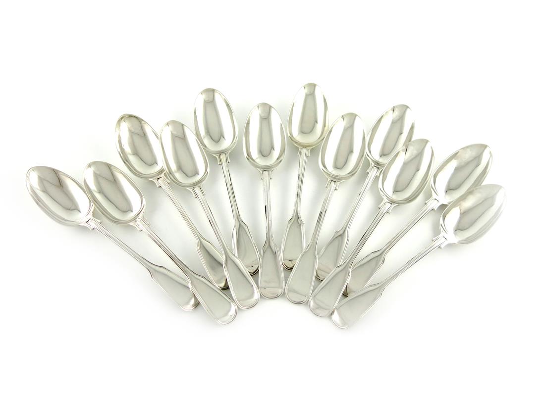 A matched set of twelve Victorian silver Fiddle and Thread pattern tablespoons