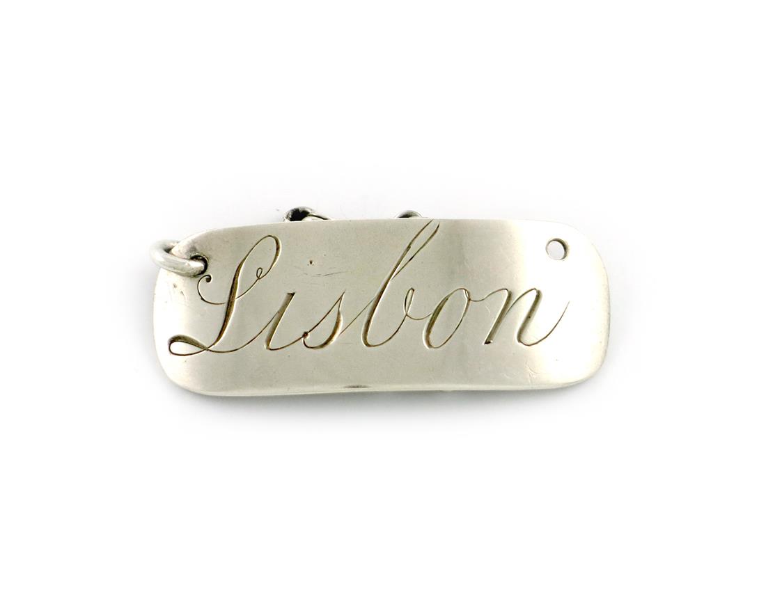 narrow rectangular form, incised 'LISBON', length 3.7cm, approx. weight 0.2oz.
