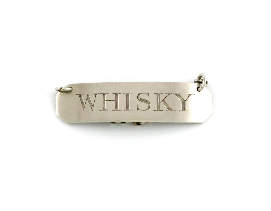 rectangular form, canted corners, incised 'WHISKY', length 5.5cm, approx. weight 0.3oz.