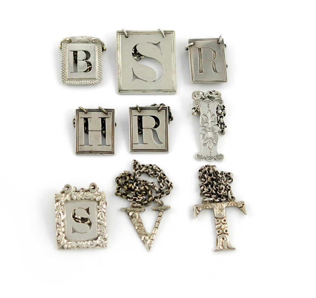 comprising a large 'S', within a rectangular frame, by W. King, London 1842, a pair by Phipps and Robinson 'R' and 'H', plus other letters 'V', 'B', 'R', 'I','T', and 'S', approx. weight 2.9oz. (9)