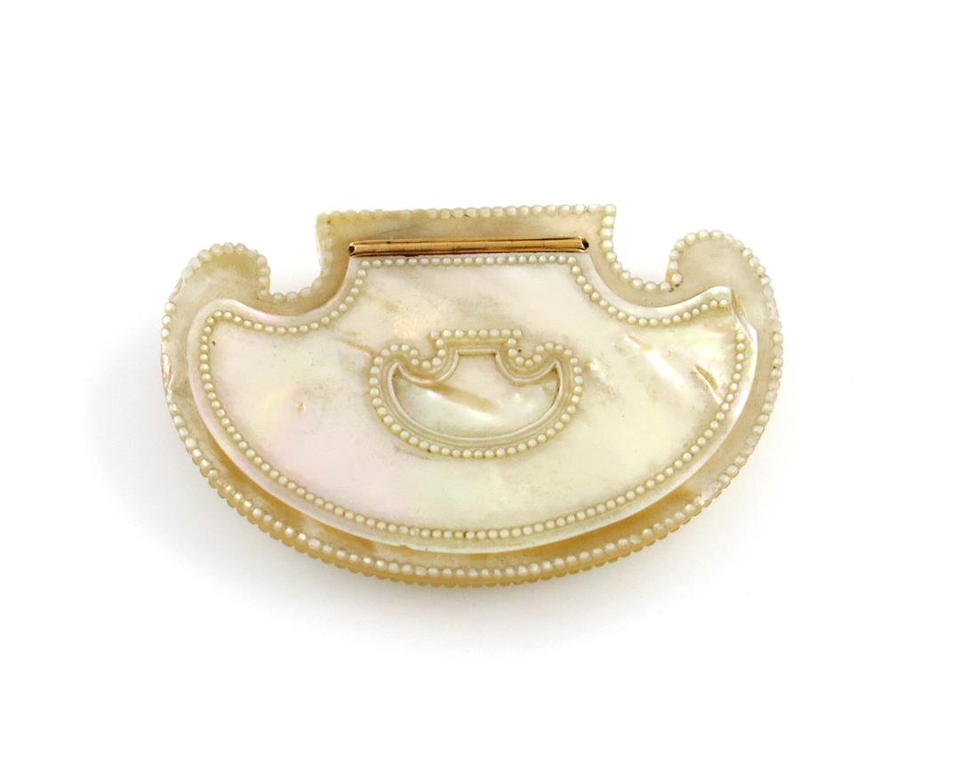 An early 19th century French gold-mounted mother-of-pearl snuff box