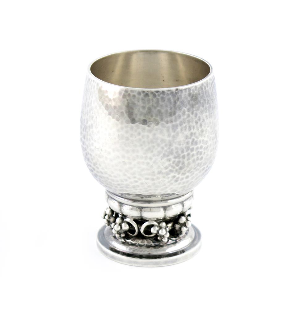 circular bowl, spot hammered decoration, on pierced grape stem, on a circular foot, height 6.9cm, approx. weight 3.2oz.