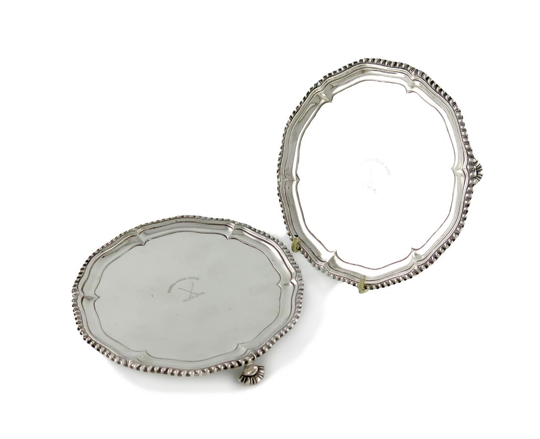 A pair of George III Scottish silver waiters,