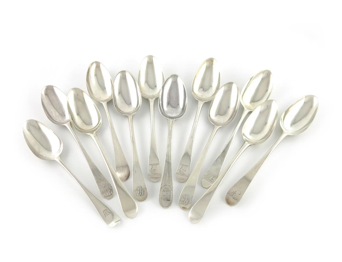 A collection of twelve George III silver Old English pattern tablespoons