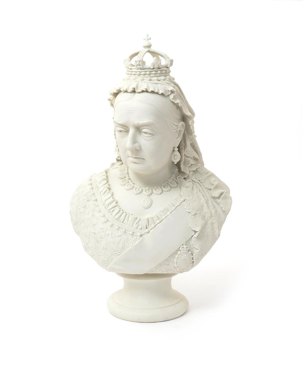 A large Robinson and Leadbetter Parian bust of Queen Victoria c.1897