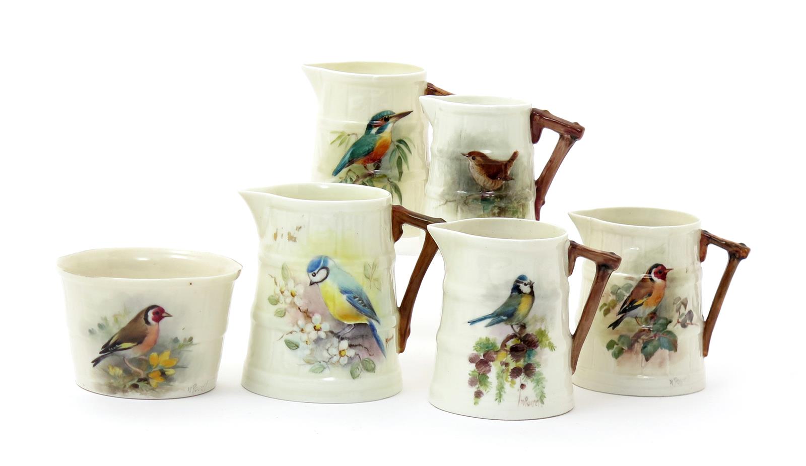 Five Royal Worcester ornithological milk jugs date codes for 1911