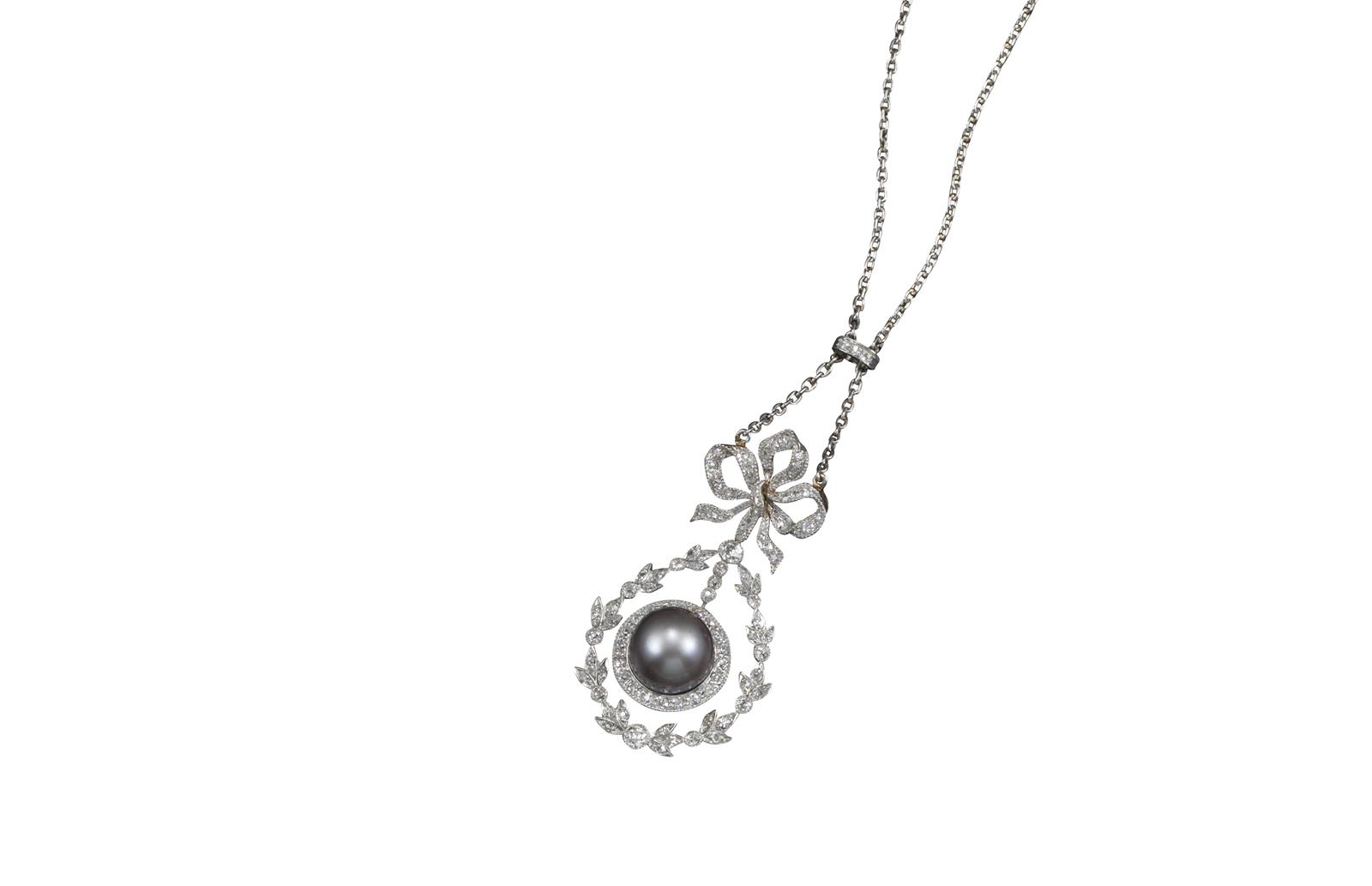 A Belle Époque diamond and natural pearl pendant