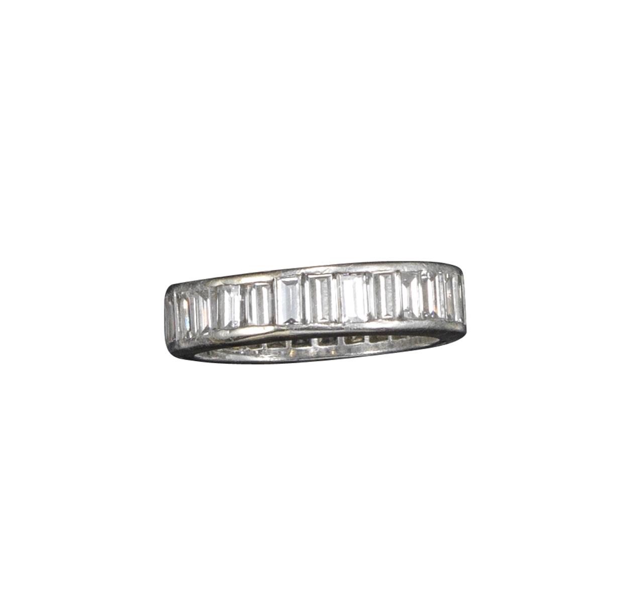 A diamond full-circle eternity ring, channel-set with baguette-shaped diamonds in platinum, size L ½
