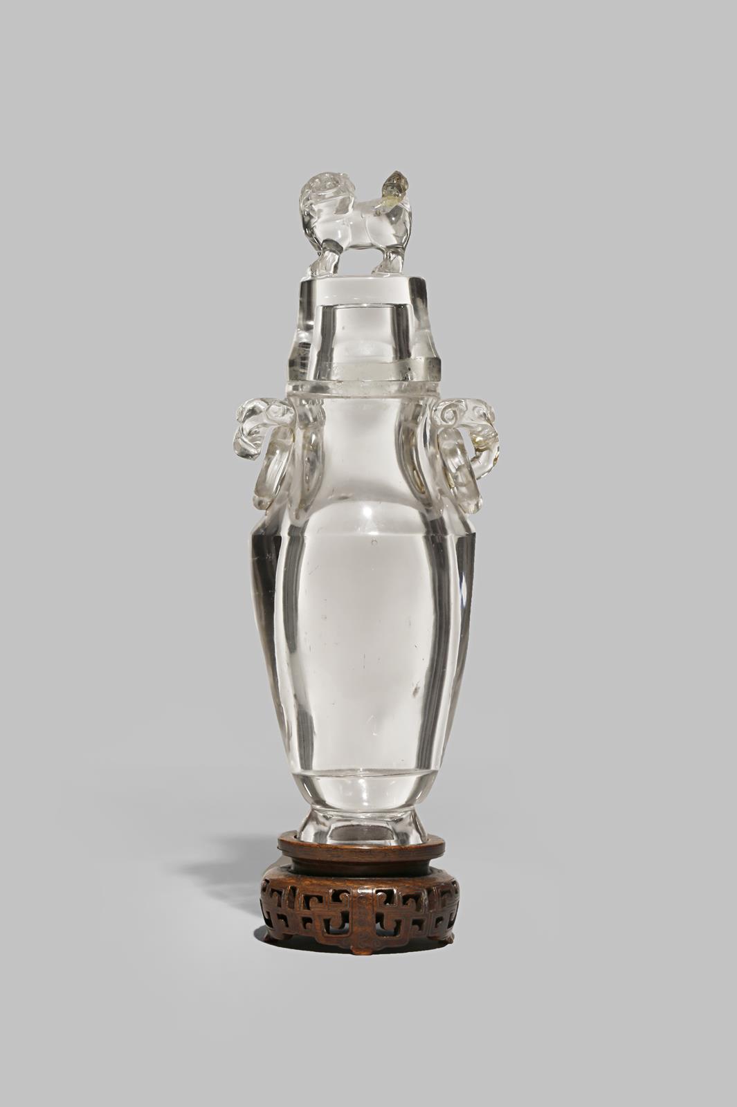 A LARGE CHINESE ROCK CRYSTAL VASE AND COVER QING DYNASTY With a tapering body and a waisted...