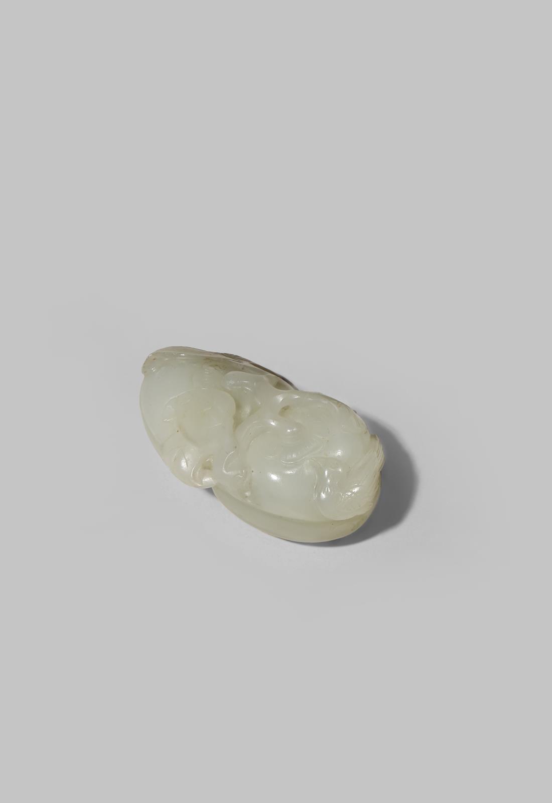 A CHINESE WHITE JADE CARVING OF TWO SHARON FRUIT QING DYNASTY The two fruit issuing from one...