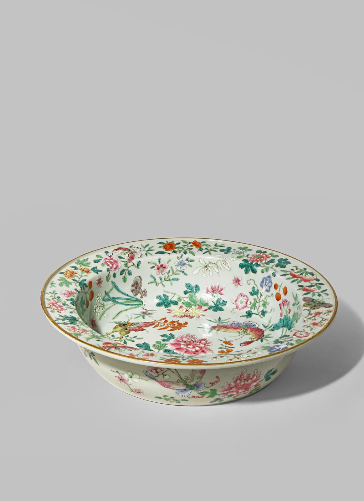 A RARE CHINESE FAMILLE ROSE 'FLOWERS AND BUTTERFLIES' WASH BASIN