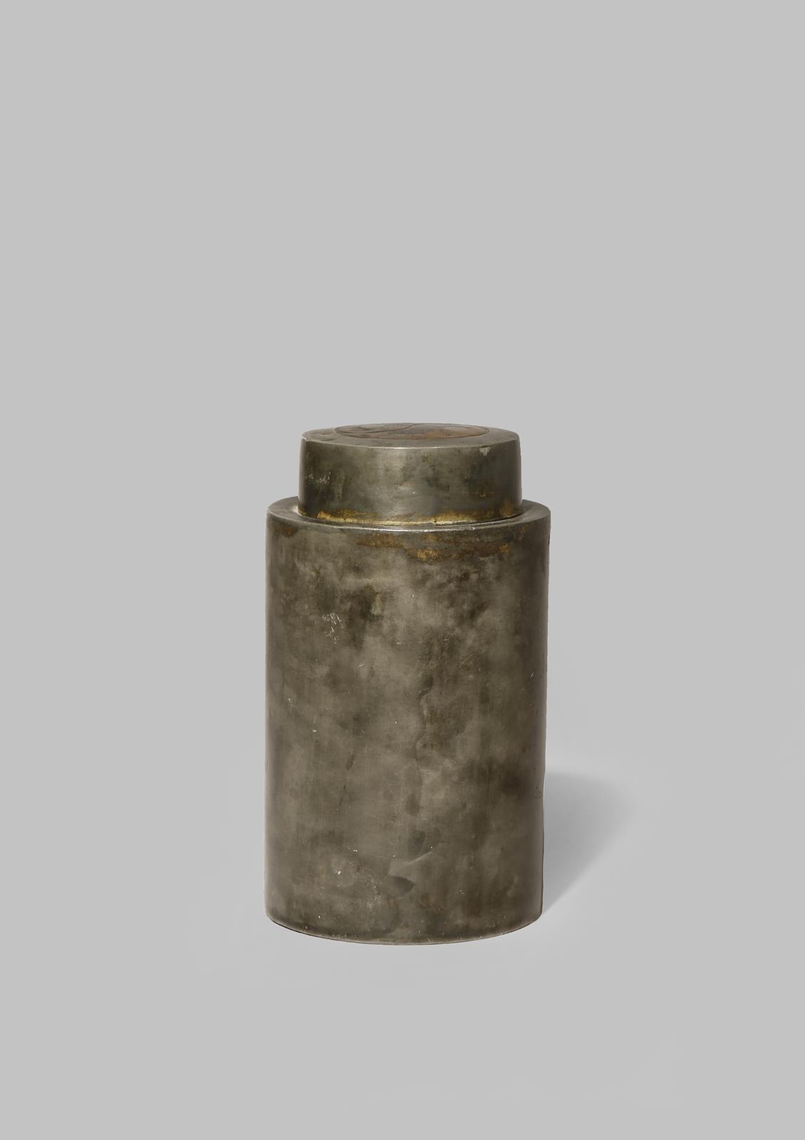 A CHINESE CYLINDRICAL PEWTER TEA CANISTER BY SHEN CUN ZHOU EARLY QING DYNASTY With a yin-yang...