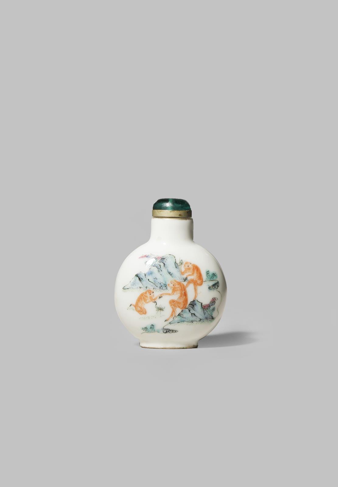 A CHINESE FAMILLE ROSE 'MONKEYS' SNUFF BOTTLE