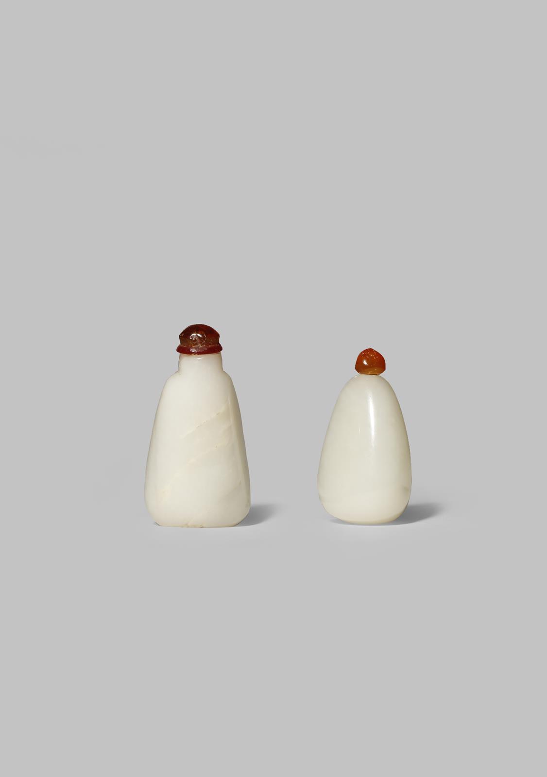 TWO CHINESE WHITE JADE SNUFF BOTTLES QING DYNASTY One of pebble form