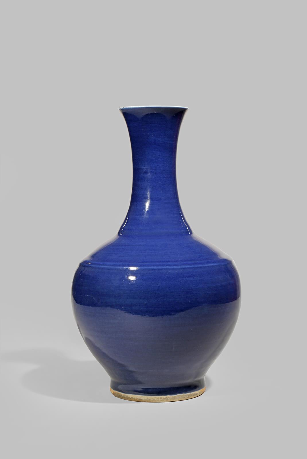 With a tall slender neck rising from an ovoid body, decorated with an even cobalt-blue glaze, the base with a six character Guangxu mark, 41cm.