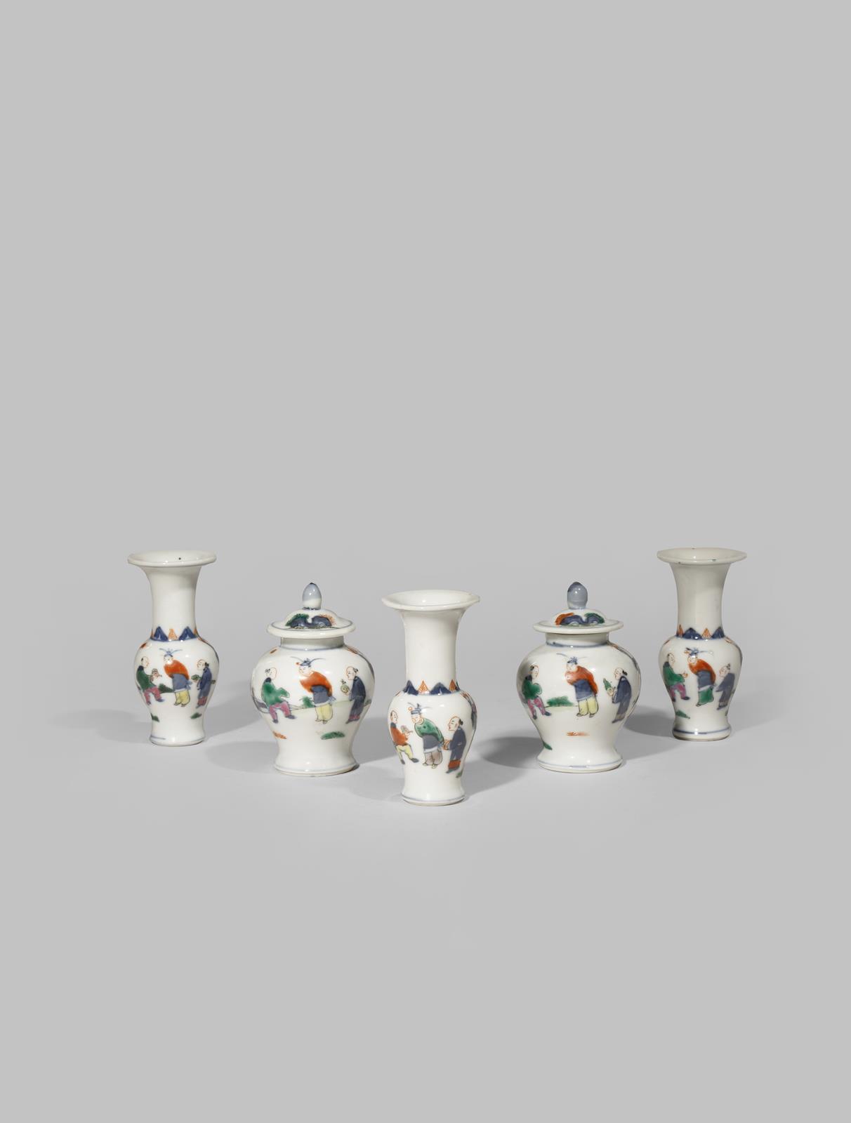 A CHINESE MINIATURE GARNITURE OF FIVE VASES