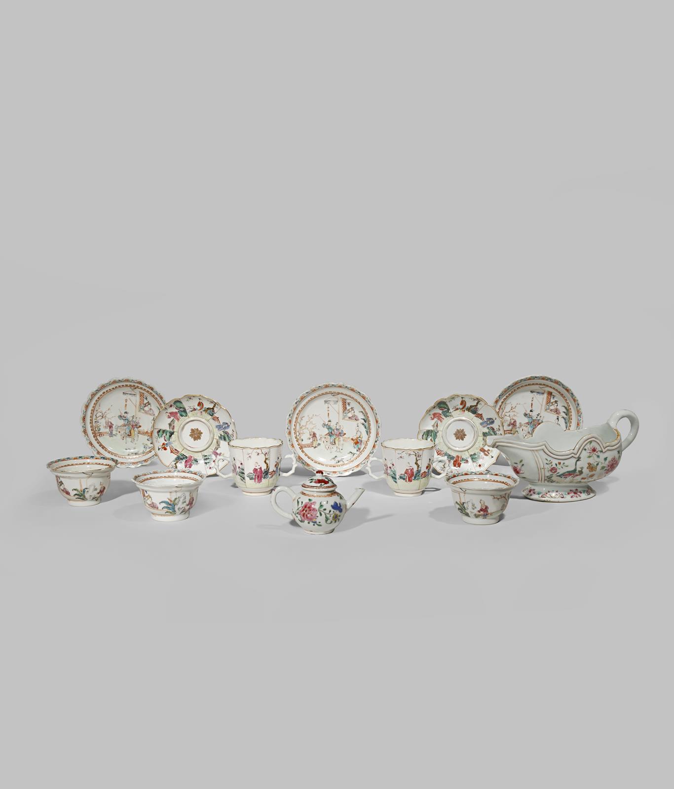 A COLLECTION OF CHINESE FAMILLE ROSE PORCELAIN 18TH CENTURY Comprising: three tea bowls and a...