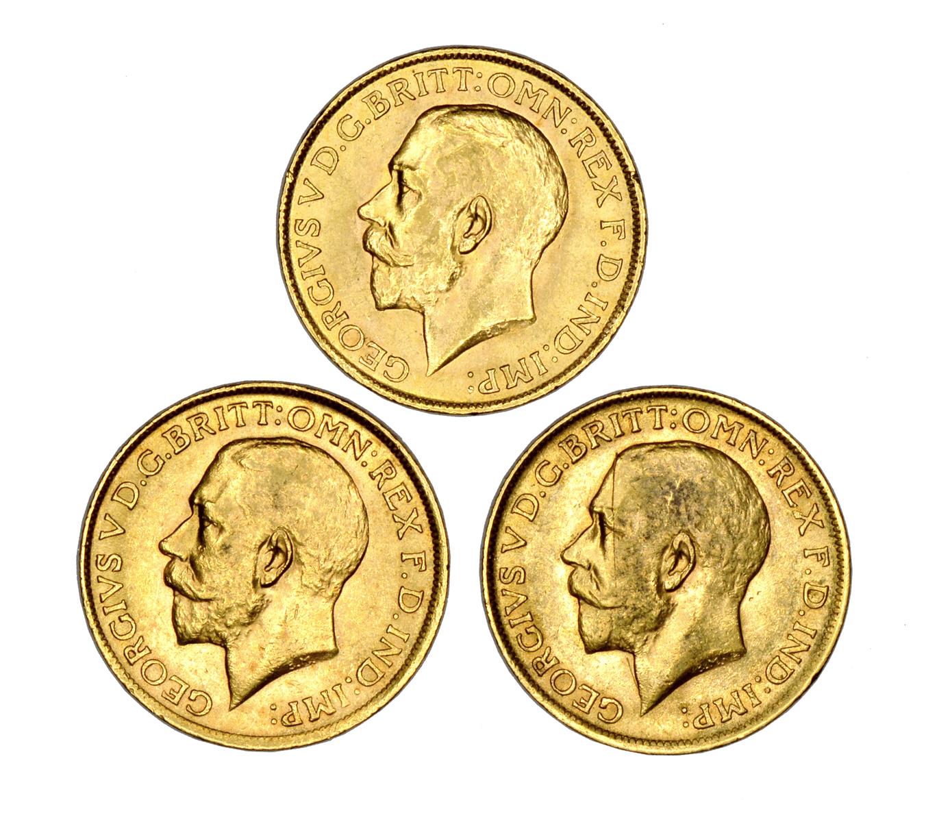 George V, gold sovereigns, 1913 (3) (S 3996). Good very fine or better. [3]